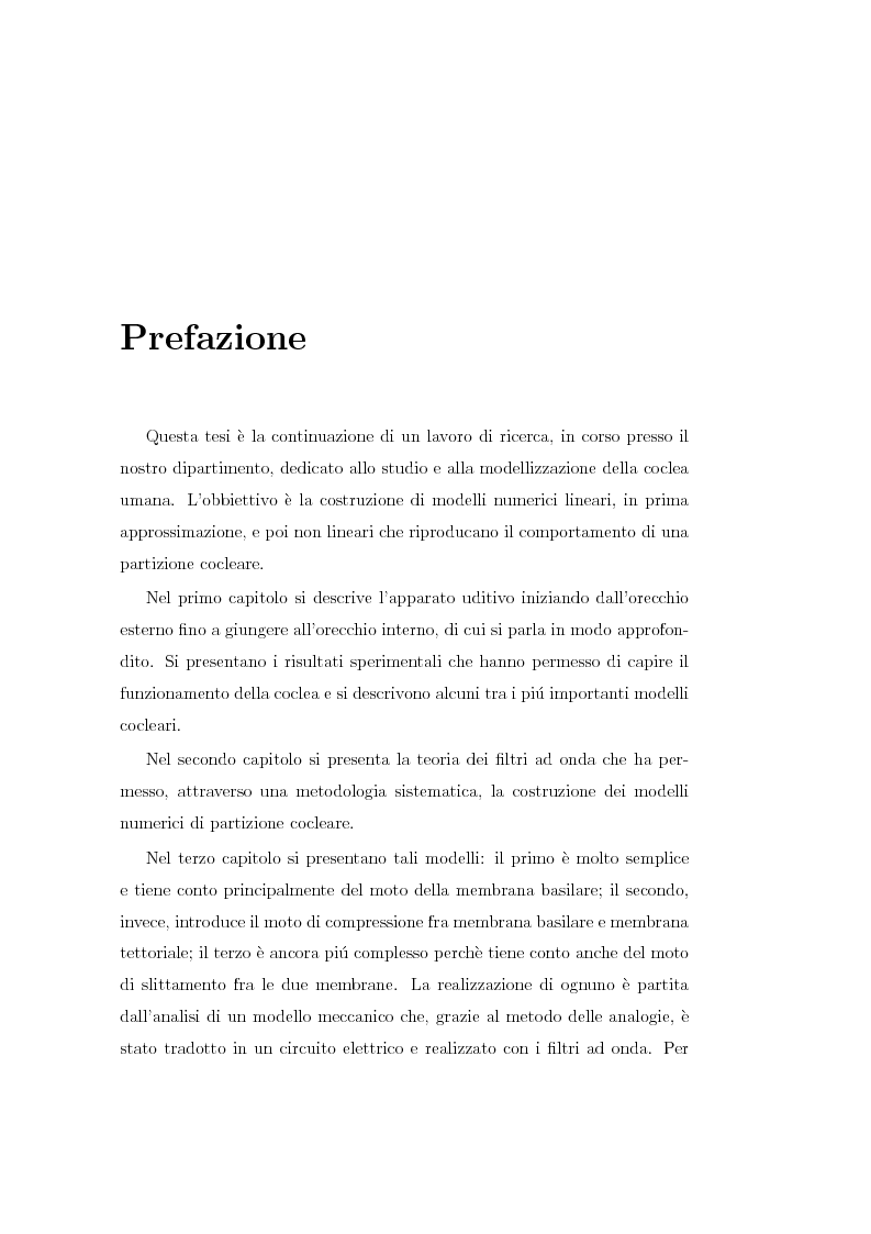 Modelli lineari e non lineari di partizione cocleare: loro realizzazione con filtri ad onda