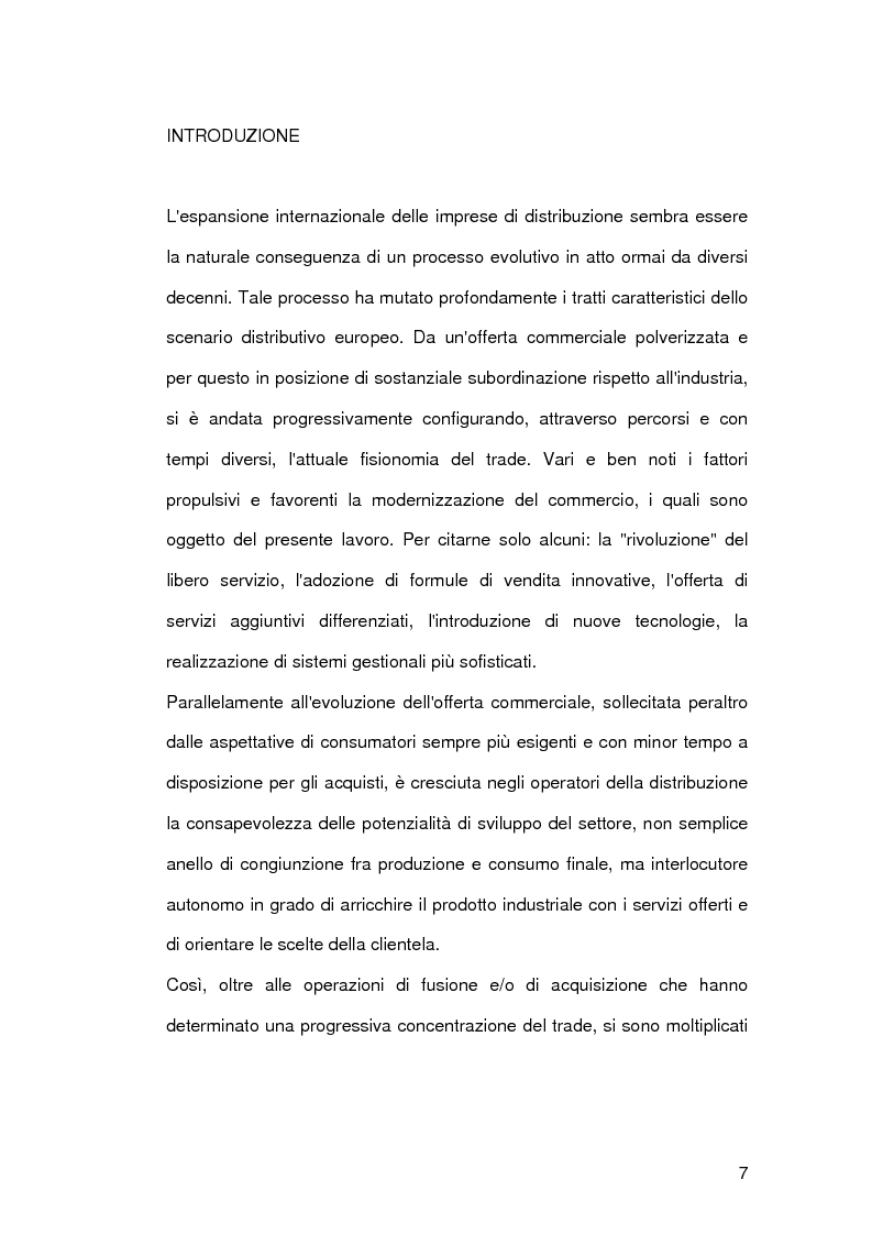 Tale processo, ha mutato profondamente i tratti caratteristici dello scenario distributivo europeo e mondiale. Da un'offerta commerciale polverizzata e per questo in posizione di sostanziale subordinazione rispetto all'industria, si è andata progressivamente configurando, attraverso percorsi e con tempi diversi, l'attuale fisionomia del trade. Vari e ben noti i fattori propulsivi e favorenti la modernizzazione del commercio, i quali sono oggetto del presente lavoro. Per citarne solo alcuni: la "rivoluzione" del libero servizio, l'adozione di formule di vendita innovative, l'offerta di servizi aggiuntivi differenziati, l'introduzione di nuove tecnologie, la realizzazione di sistemi gestionali più sofisticati.