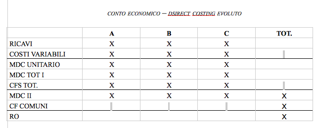 EVOLUTO : mantiene la distinzione tra costi fissi e variabili, ma