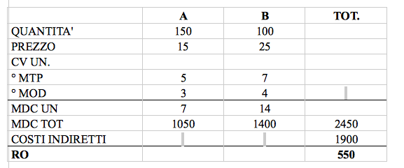 Per distribuire i 1900 euro di costi indiretti tra i prodotti bisogna scegliere un PARAMETRO D’IMPUTAZIONE.