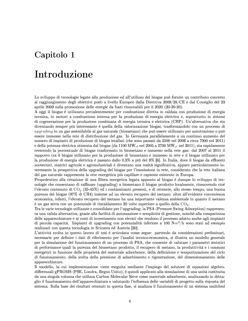 Upgrading del biogas mediante Pressure Swing Adsorption: modellizzazione ed analisi tecnico-economica