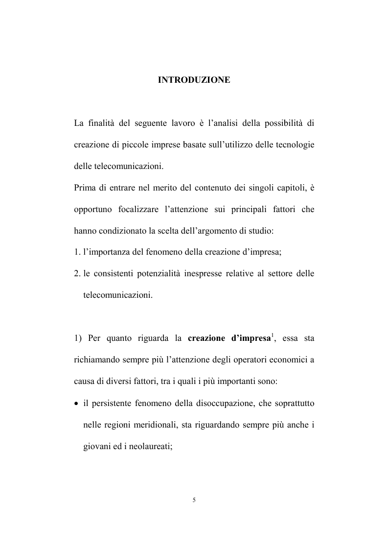 La finalità del seguente lavoro è l’analisi della possibilità di creazione di piccole imprese basate sull’utilizzo delle tecnologie delle telecomunicazioni.