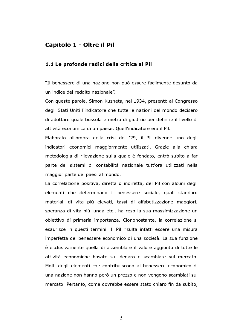 Dopo aver brevemente ricordato nel primo capitolo l’ormai nota inadeguatezza del Pil, nel secondo capitolo vengono esaminati i contributi al suo superamento offerti di recente da autorevoli organismi internazionali (Ocse, Commissione Europea).