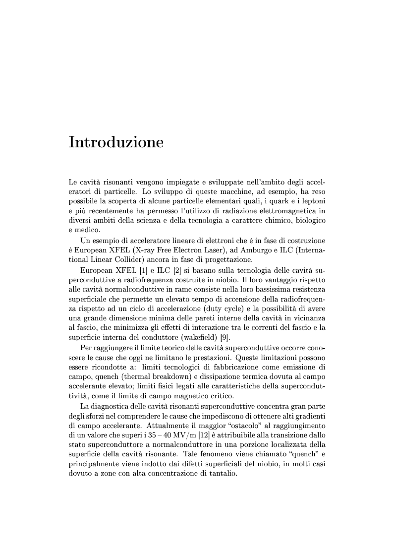 Oggi la costruzione delle macchine acceleranti più moderne (XFEL, ILC) si basa sull'utilizzo di cavità risonanti superconduttive che operano a temperature criogeniche intorno a 2 K. Per raggiungere il limite teorico di queste cavità occorre conoscere le cause che ne limitano le prestazioni. Queste limitazioni possono essere ricondotte a limiti tecnologici di fabbricazione come emissione di campo, quench (thermal breakdown) e dissipazione termica dovuta al campo accelerante elevato; limiti fisici legati alle caratteristiche intrinseche della superconduttività, come il limite di campo magnetico critico Hc.