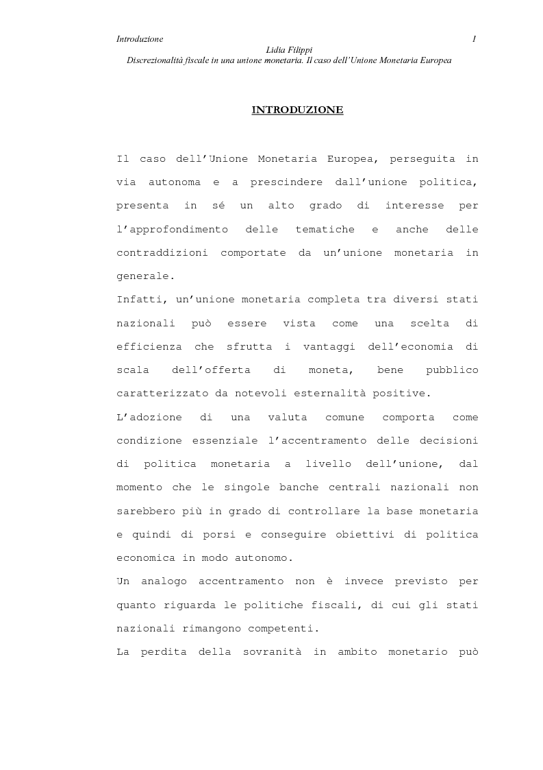 Discrezionalità fiscale in una unione monetaria. Il caso dell'Unione Monetaria Europea