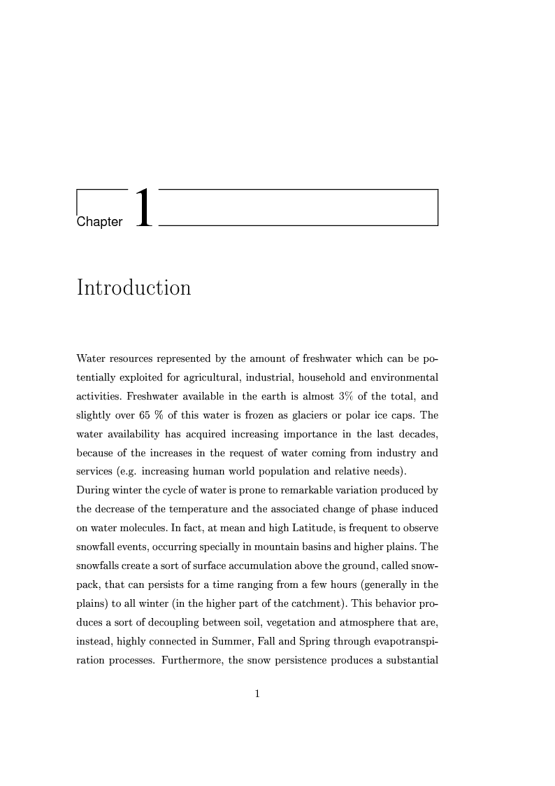 The water availability has acquired increasing importance in the last decades, because of the increases in the request of water coming from industry and services (e.g. increasing human world population and relative needs).