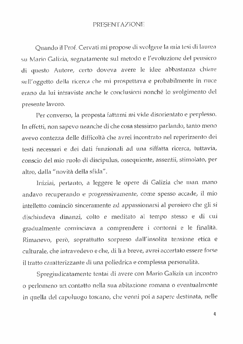 La prima analisi (con Galizia ancora vivente) del pensiero dell'insigne studioso e docente, che si concentra sulla sua esperienza umana e sulla sua formazione , sul suo percorso accademico e indulge nell'analisi del suo metodo e sull'evoluzione del suo pensiero.