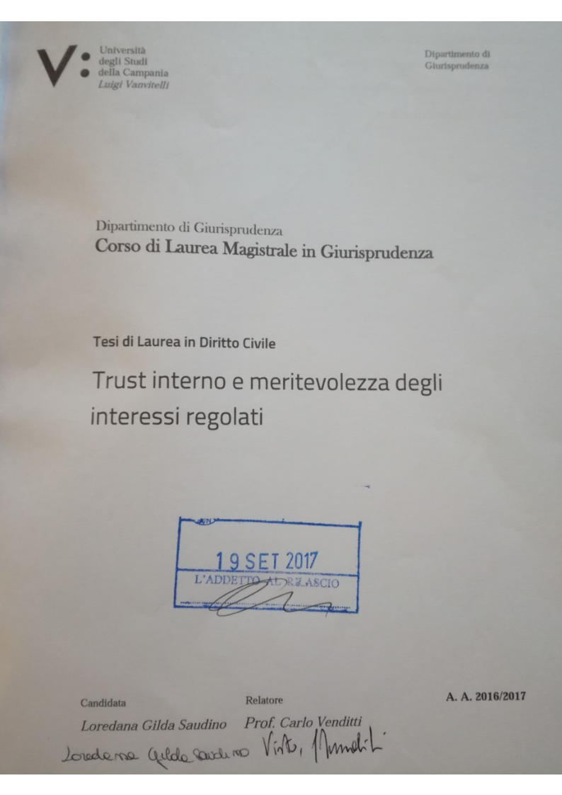 - perché, a differenza di altri materiali che puoi reperire online, una tesi di laurea è stata verificata da un docente universitario e dalla commissione in sede d'esame. La nostra redazione inoltre controlla prima della pubblicazione la completezza dei materiali e, dal 2009, anche l'originalità della tesi attraverso il software antiplagio Compilatio.net.