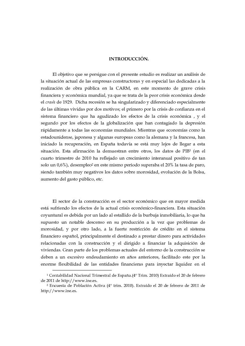 Debido a la escasez de información al respecto se ha analizado el sector de obra pública en la Comunidad Autónoma de la Región de Murcia, tanto en los albores de la crisis, como una vez empezado a sufrir sus efectos, destacándose un fuerte aumento de la reducción de precios, provocado en gran parte al excesivo poder de mercado con el que cuentan las Administraciones Públicas.