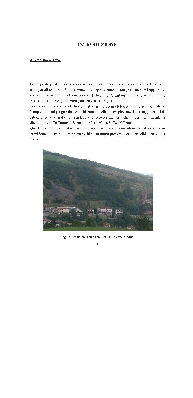Studio geologico-tecnico della frana contigua all'abitato di Silla (Comune di Gaggio Montano - Bologna)