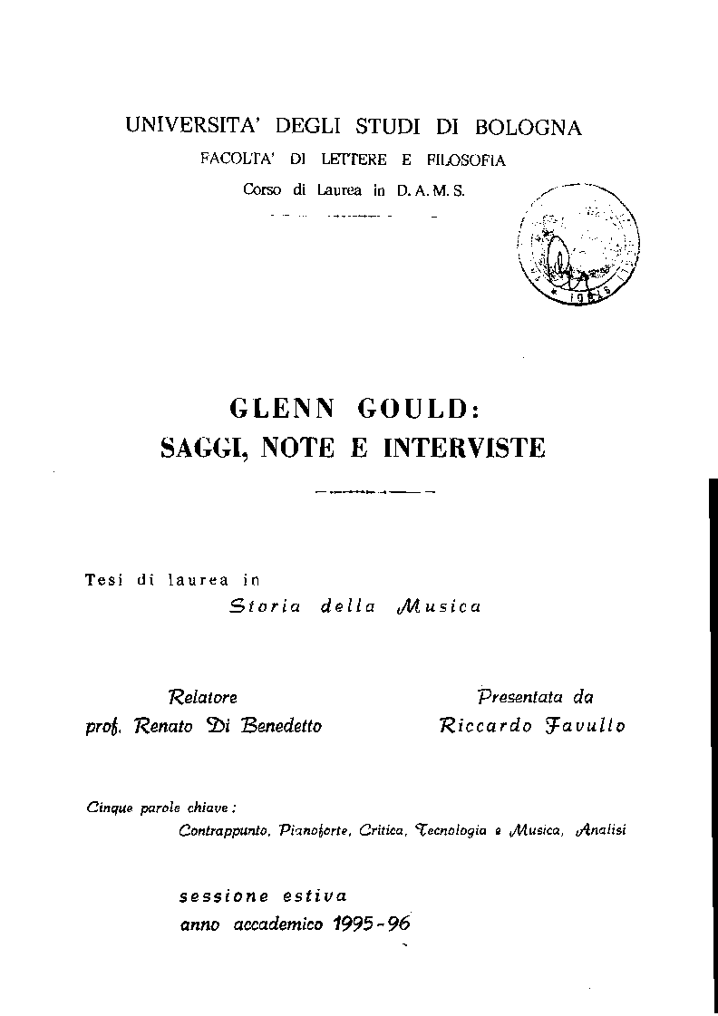 Questo lavoro si prefigge essenzialmente due scopi: il primo è quello di discutere non già del pianista Gould, del Gould interprete (di cui è stato detto e scritto a profusione) quanto piuttosto di affrontare la considerevole mole di articoli e saggi musicali che il pianista pubblicò in vari modi (su riviste musicali, su retro di copertine di dischi, libri ed altro).