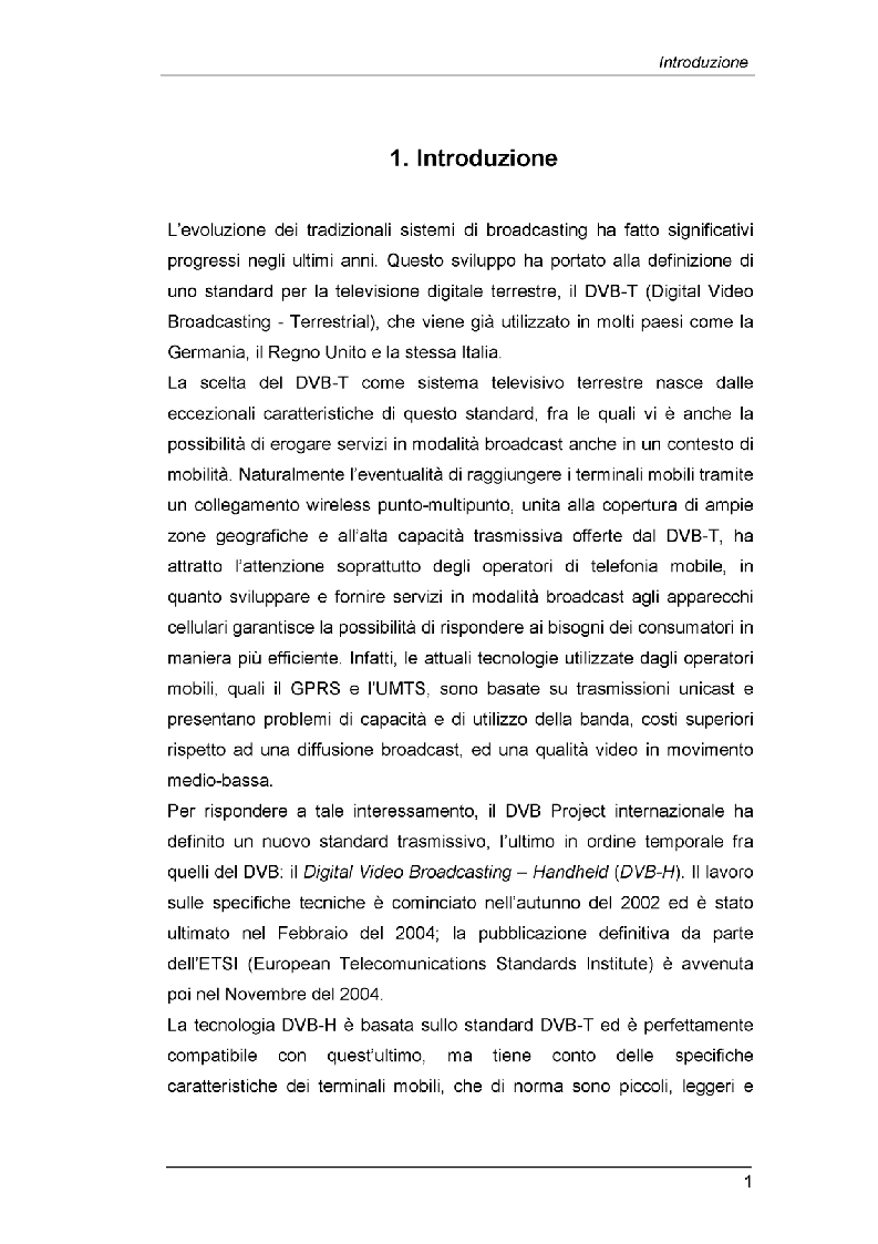 Individuazione dei possibili modelli architetturali e di servizio alla base di un modello di business per la televisione digitale interattiva fruibile tramite terminale mobile con tecnologia DVB-H.
