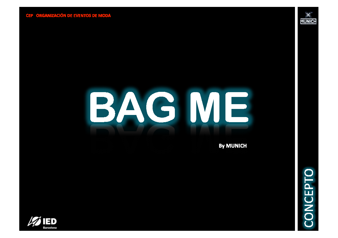 Piano di comunicazione e manuale operativo presentato per il lancio della prima linea di borse della casa di moda spagnola Munich.
