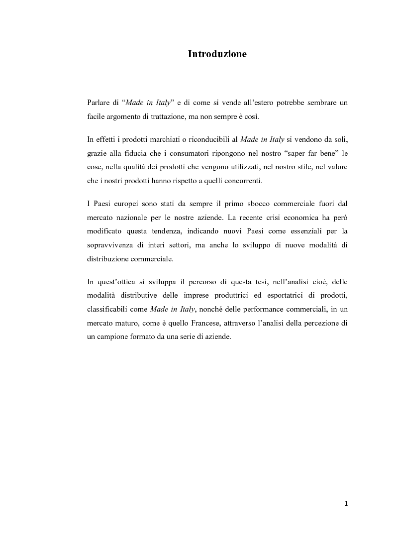 In quest’ottica si sviluppa il percorso di questa tesi, nell’analisi cioè, delle modalità distributive delle imprese produttrici ed esportatrici di prodotti, classificabili come Made in Italy, nonché delle performance commerciali, in un mercato maturo, come è quello Francese, attraverso l’analisi della percezione di un campione formato da una serie di aziende.