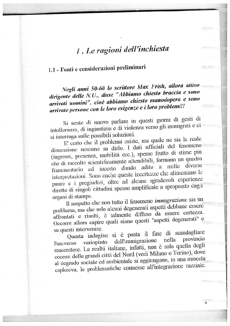 L'immigrazione nella Provincia di Macerata - Inchiesta conoscitiva anno 1995